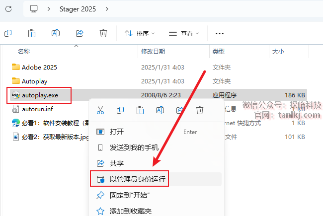 打开解压后的文件夹,右键程序【autoplay】,点击【以管理员身份运行】。