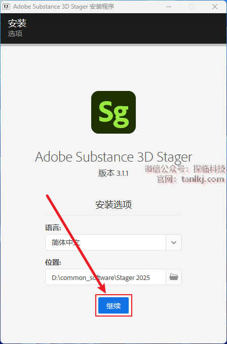 更改软件默认的安装位置,如不需更改,直接点击【继续】即可。
