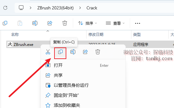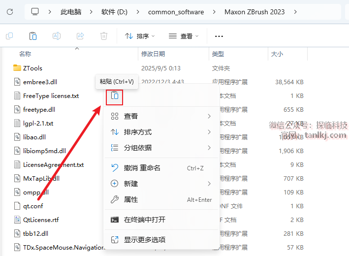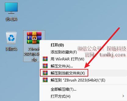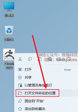 在桌面,右键软件【ZBrush 2023】,点击【打开文件所在的位置】。