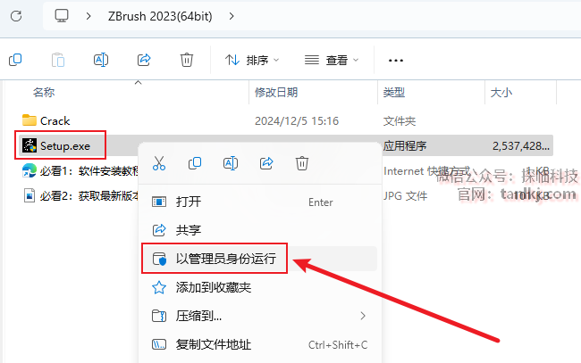 打开解压后的文件夹,右键程序【Setup】,点击【以管理员身份运行】。