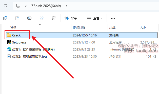 打开之前解压后的文件夹,双击打开文件夹【Crack】。