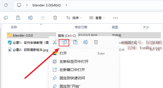 打开解压后的文件夹,复制文件【blender-3.0.0】。