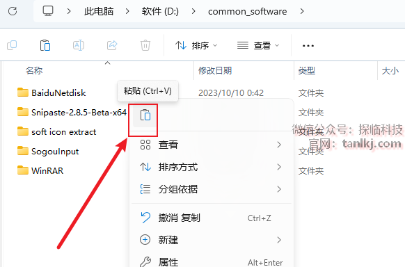 打开软件需要安装的位置,粘贴刚刚复制的文件。
