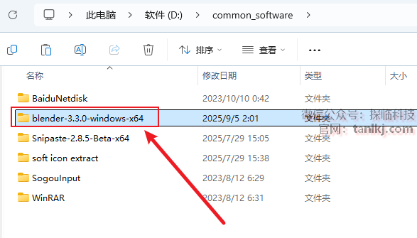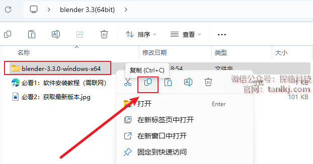 打开解压后的文件夹,复制文件【blender-3.3.0…】。