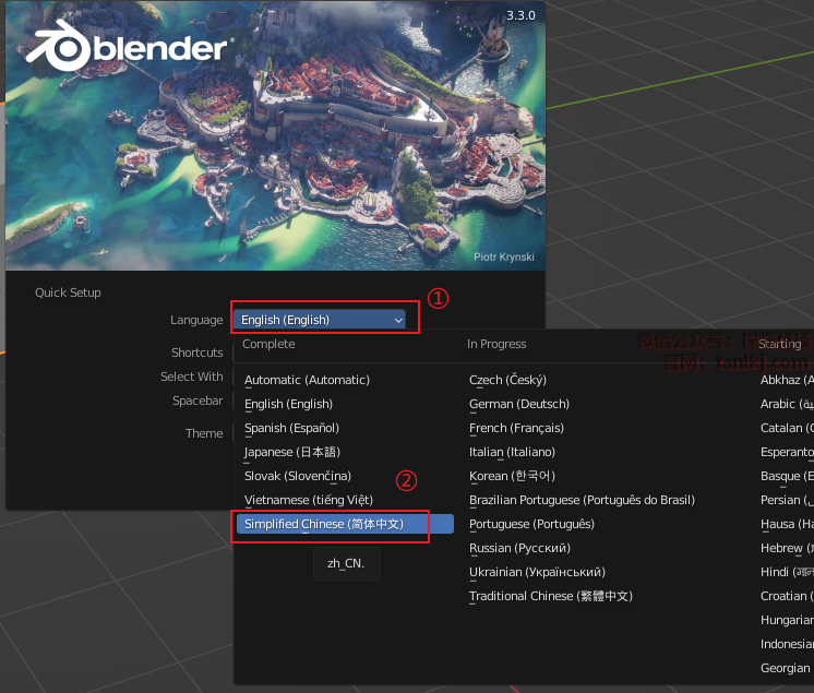 ②点击【Simplified Chinese(简体中文)】。