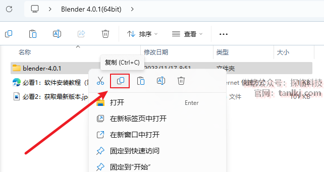 打开解压后的文件夹,复制文件【blender-4.0.1】。