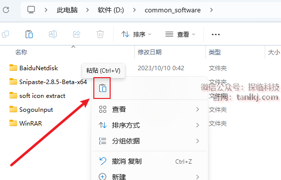 打开软件需要安装的位置,粘贴刚刚复制的文件。