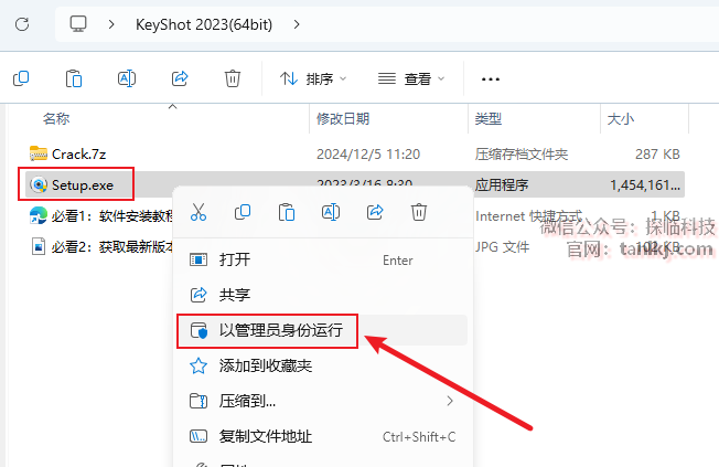 打开解压后的文件夹,右键程序【Setup】,点击【以管理员身份运行】。