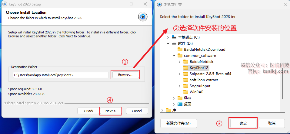 ②选择软件安装的位置,安装路径中不能包含任何中文字符;