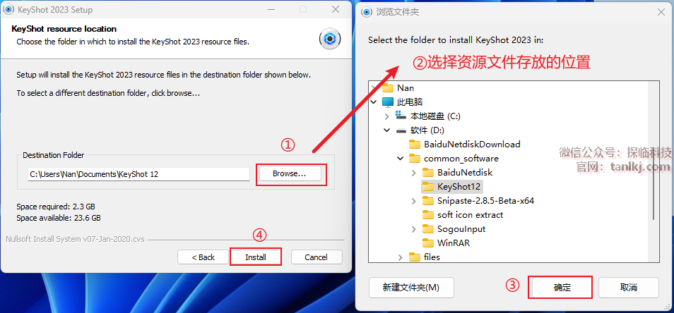 更改软件资源文件存放的位置,如不需更改,直接点击【Install】即可。
