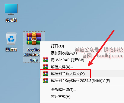 解压下载后的软件包。右键软件包,点击【解压到当前文件夹】(win11系统需先点击【显示更多选项】)。 (未安装解压软件可以点击此处查看:如何安装解压软件?)