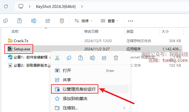 打开解压后的文件夹,右键程序【Setup】,点击【以管理员身份运行】。