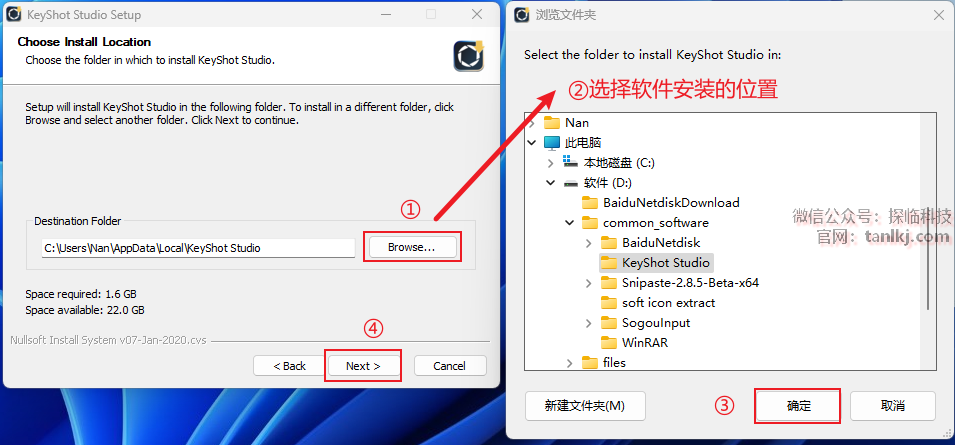 ②选择软件安装的位置,安装路径中不能包含任何中文字符;