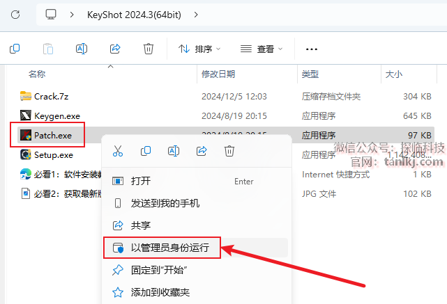 右键刚刚解压出来的文件【Patch】,点击【以管理员身份运行】。