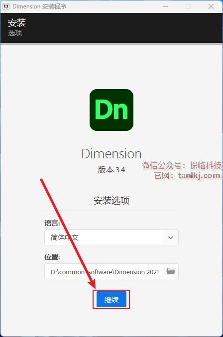 更改软件默认的安装位置,如不需更改,直接点击【继续】即可。