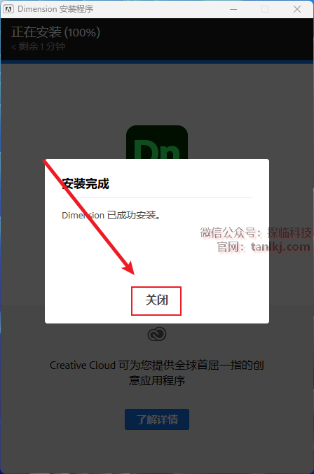 安装完成后,点击【关闭】。