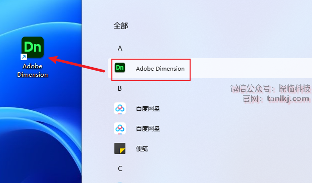 找到刚刚安装的软件【Adobe Dimension】,并将其拖至桌面创建快捷方式。