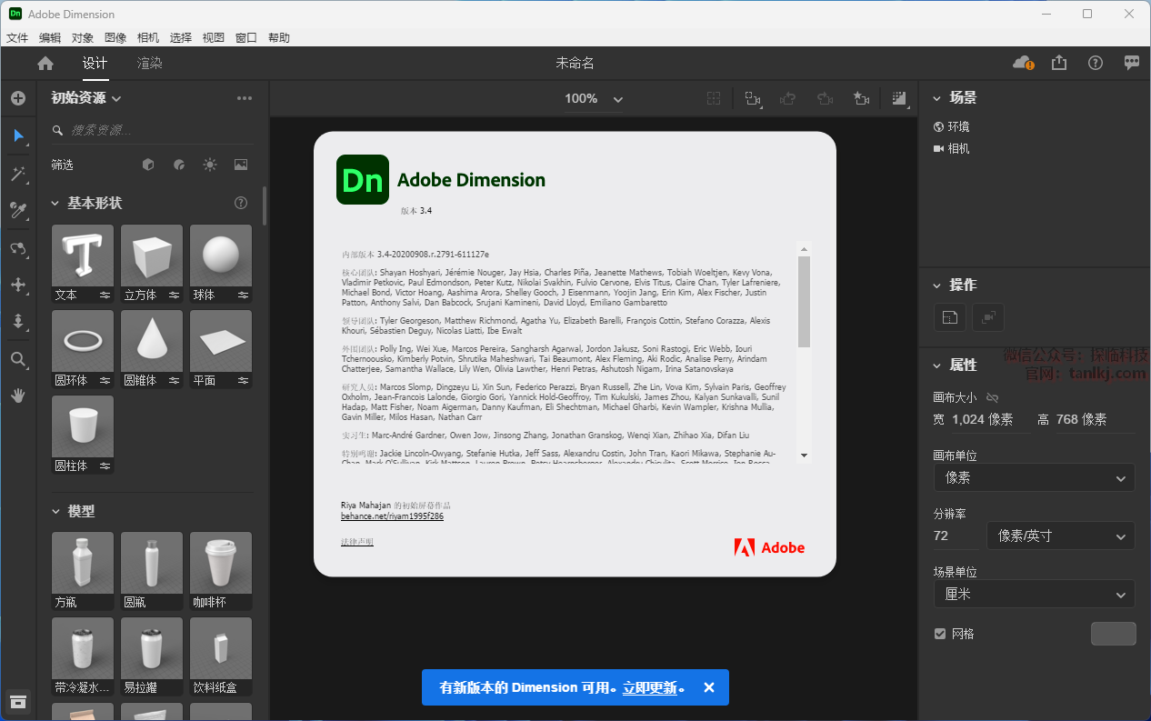 Adobe Dimension 2021 是一款专业的3D设计与可视化软件,旨在帮助用户轻松创建高质量、逼真的3D图像。它深度融合Adobe生态系统,支持无缝导入AI和PSD文件,并可将二维图稿转换为三维对象。软件集成了Adobe Sensei AI技术,可自动匹配背景图像的光照、透视与阴影,显著简化了产品镜头和场景的构建流程。其直观的界面设计与熟悉的工具操作,使得即使不熟悉3D的平面设计师也能快速上手,高效完成从概念到最终渲染的全流程工作。