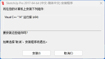 在安装SketchUp时,提示需要安装组件:Visual C++“14”运行库(x64),在安装组件的时候却发生了错误。如下图: