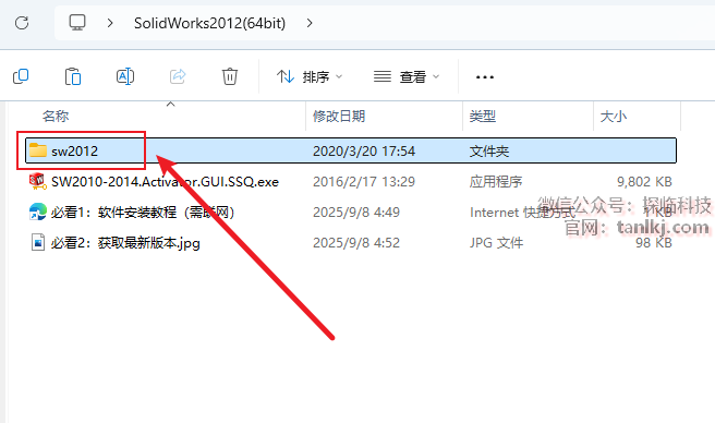 打开解压后的文件夹,双击打开文件夹【sw2012】。