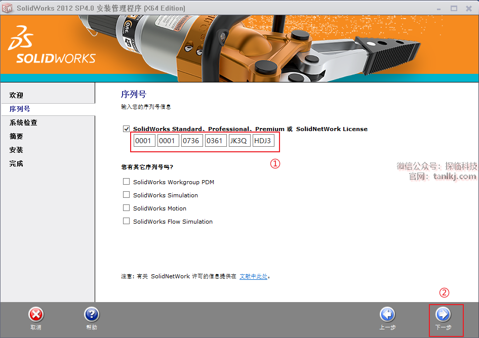 ①输入序列号:0001 0001 0736 0361 JK3Q HDJ3