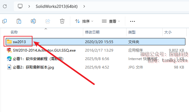 打开解压后的文件夹,双击打开文件夹【sw2013】。