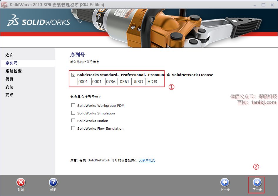 ①输入序列号:0001 0001 0736 0361 JK3Q HDJ3