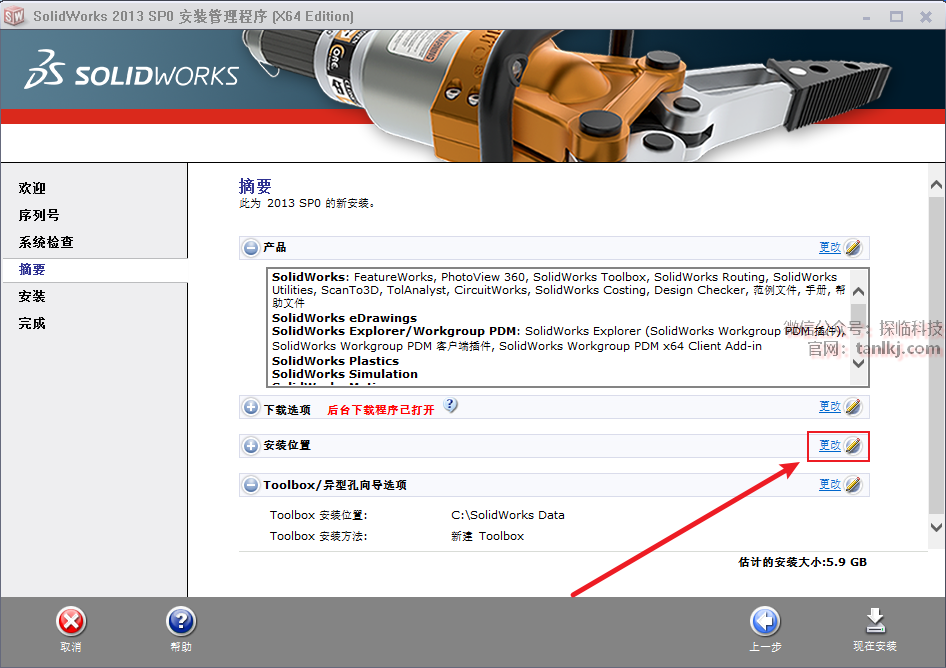 【步骤08】至【步骤12】为更改软件默认安装位置,如不需更改,直接点击右下角的【现在安装】。