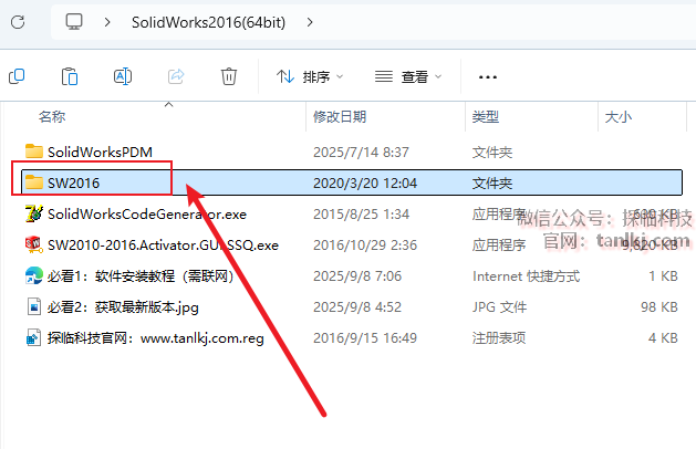 回到解压后的文件夹,双击打开文件夹【sw2016】。