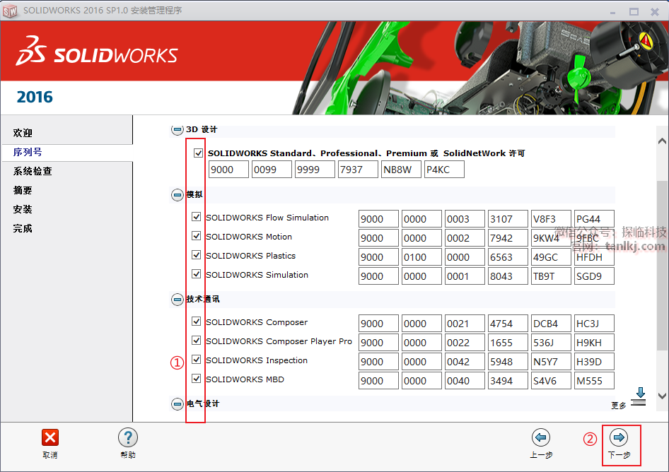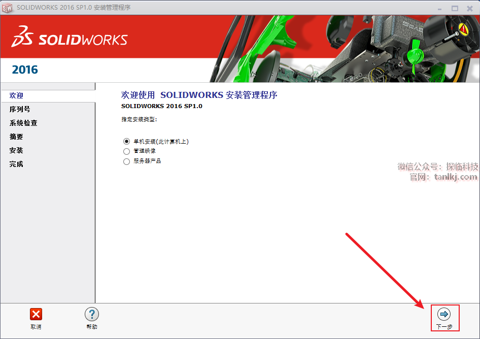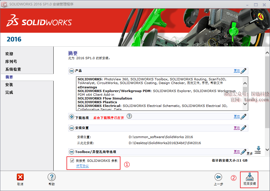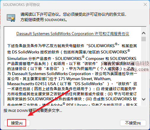 ①勾选【我接受SOLIDWORKS条款】;