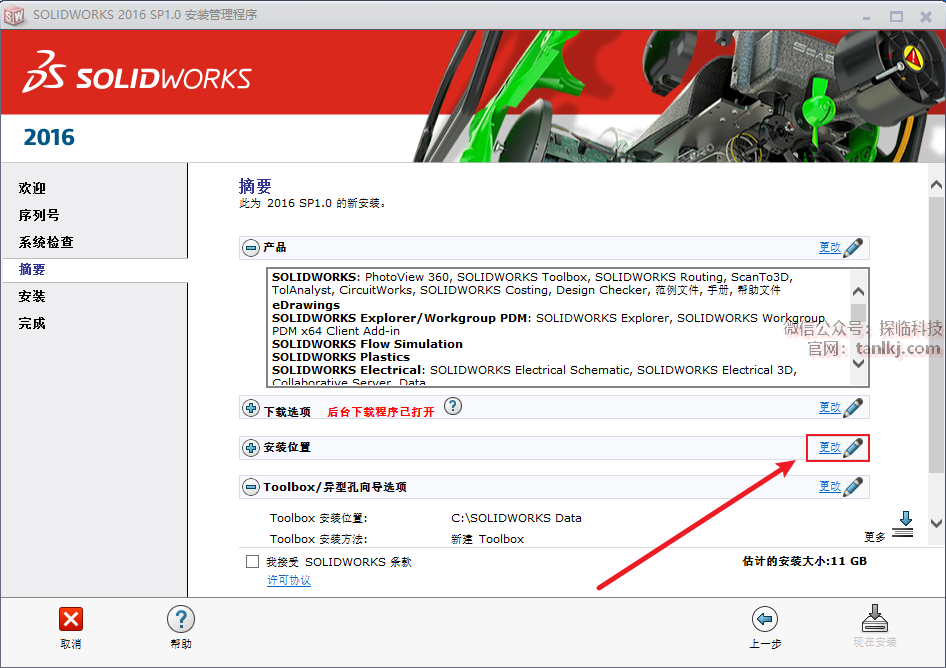 点击安装位置栏的【更改】。