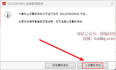 点击【以后重新启动】。