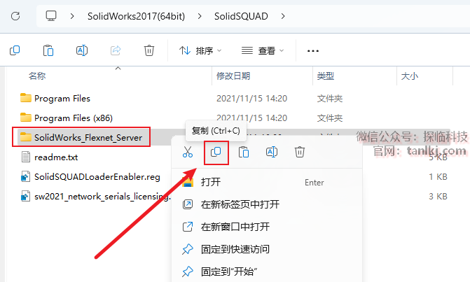 回到【SolidSQUAD】文件夹中,复制文件【SolidWorks_Flexnet_Server】。