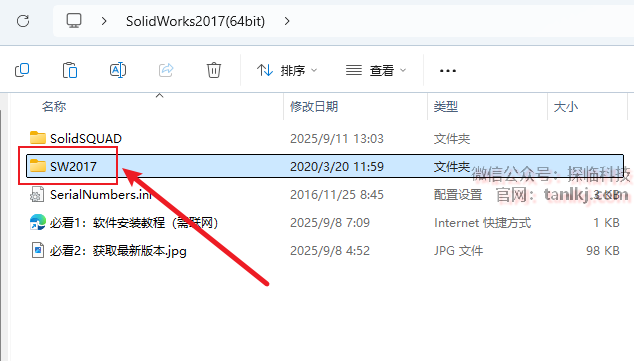 回到解压后的文件夹内,双击打开文件夹【SW2017】。