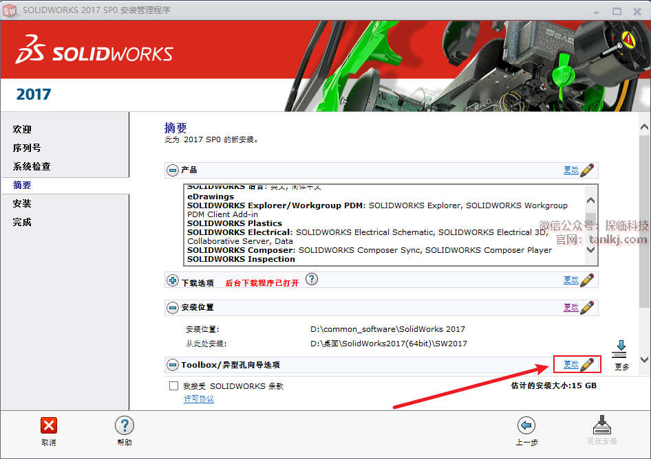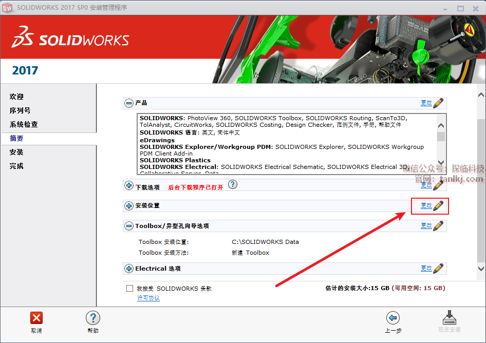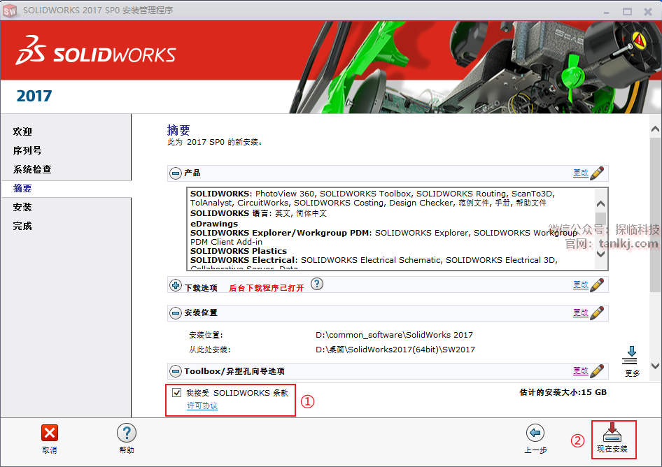 【步骤16】至【步骤22】为更改软件默认安装位置,如不需更改直接勾选协议后,直接点击右下角的【现在安装】。