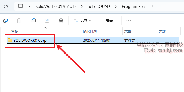 依次打开【步骤17】中记住的安装位置,若是默认位置,则依次打开路径:C:\Program Files\SOLIDWOEKS Corp
