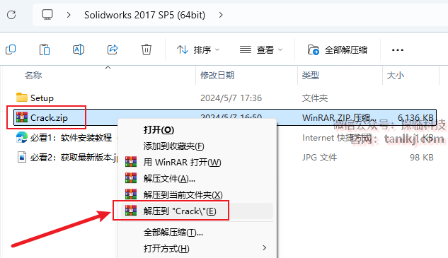 打开解压后的文件夹,右键文件【Crack】,点击【解压到“Crack\”】。