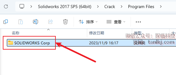 依次打开【步骤18】中记住的安装位置,若是默认位置,则依次打开路径:C:\Program Files\SOLIDWOEKS Corp