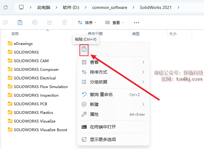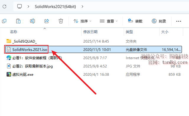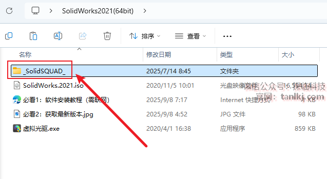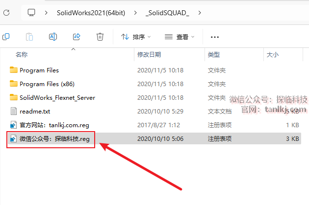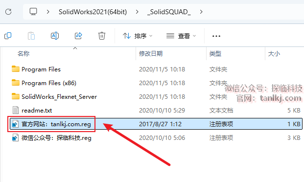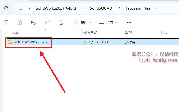 回到解压后的文件夹内,双击打开文件【SolidWorks.2021】。