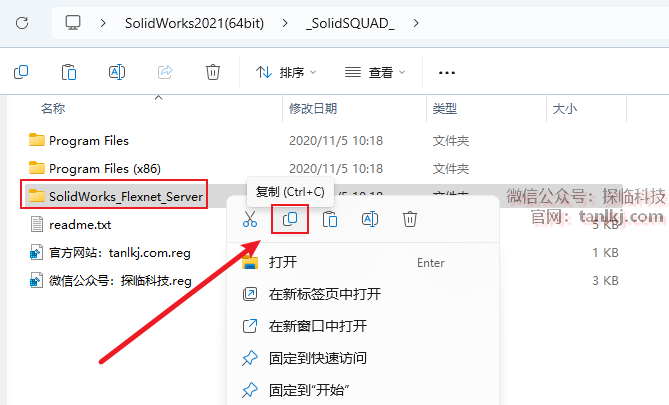 回到文件夹【_SolidSQUAD_】中,复制文件【SolidWorks_Flexnet_Server】。
