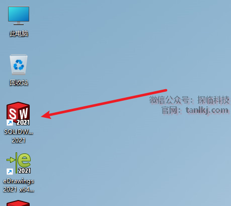 在桌面,双击运行软件【SOLIDWOEKS 2021…】。