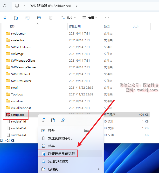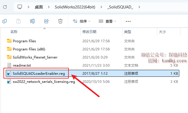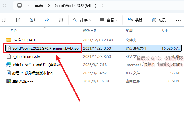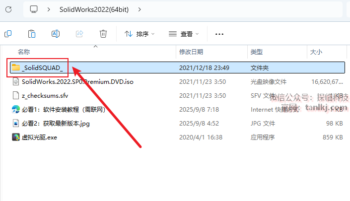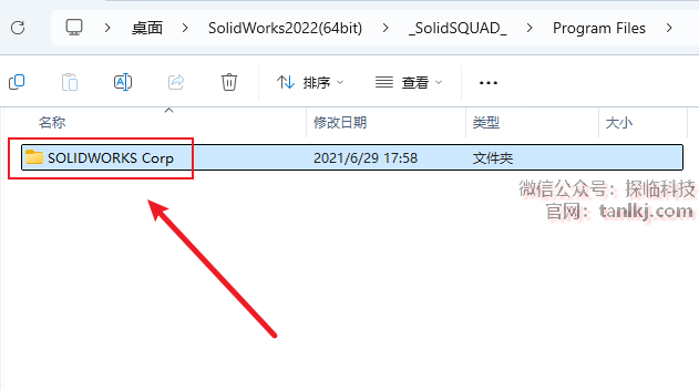 回到解压后的文件夹内,双击打开文件【SolidWorks.2022…】。