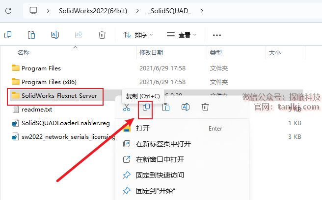 回到文件夹【_SolidSQUAD_】中,复制文件【SolidWorks_Flexnet_Server】。