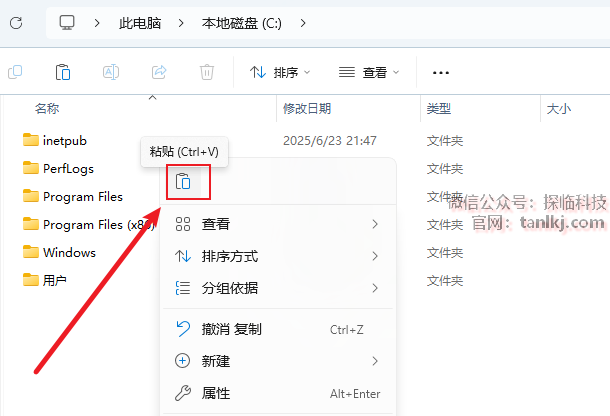 打开电脑C盘,粘贴刚刚复制的文件。