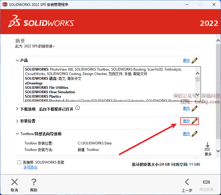点击安装位置栏的【更改】。