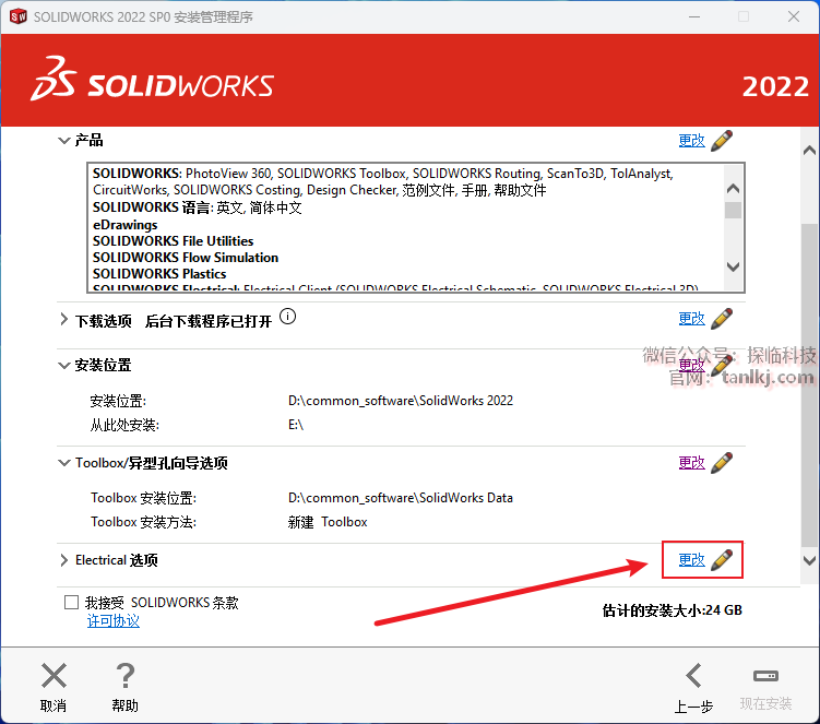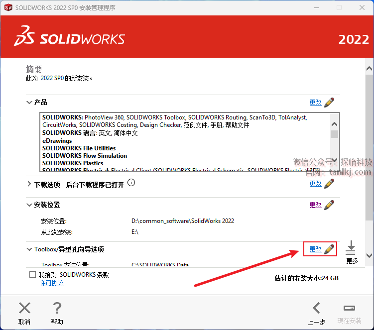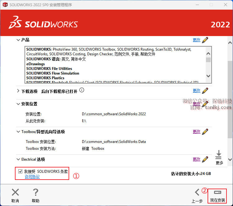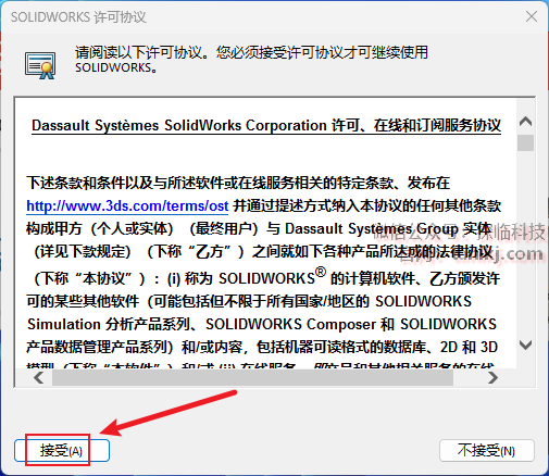 ①勾选【我接受SOLIDWORKS条款】;