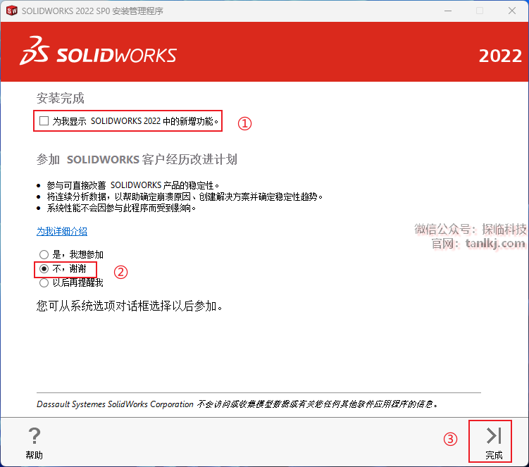 ②勾选【不,谢谢】;