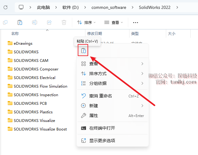 在当前文件夹内,粘贴刚刚复制的文件。