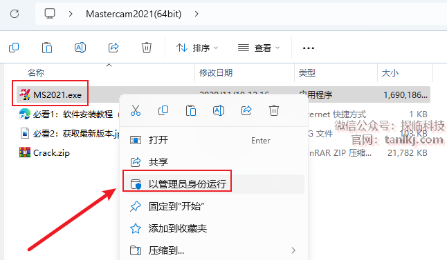 打开解压后的文件夹,右键程序【MS2021】,点击【以管理员身份运行】。