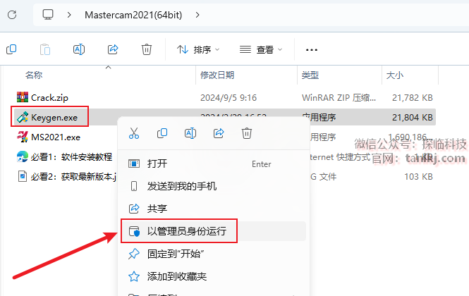 右键解压出来的文件【Keygen】,点击【以管理员身份运行】。